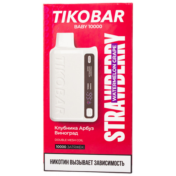 Вейп Tikobar Baby 10000 Strawberry Watermelon Grape Клубника Арбуз Виноград Одноразовый в Москве